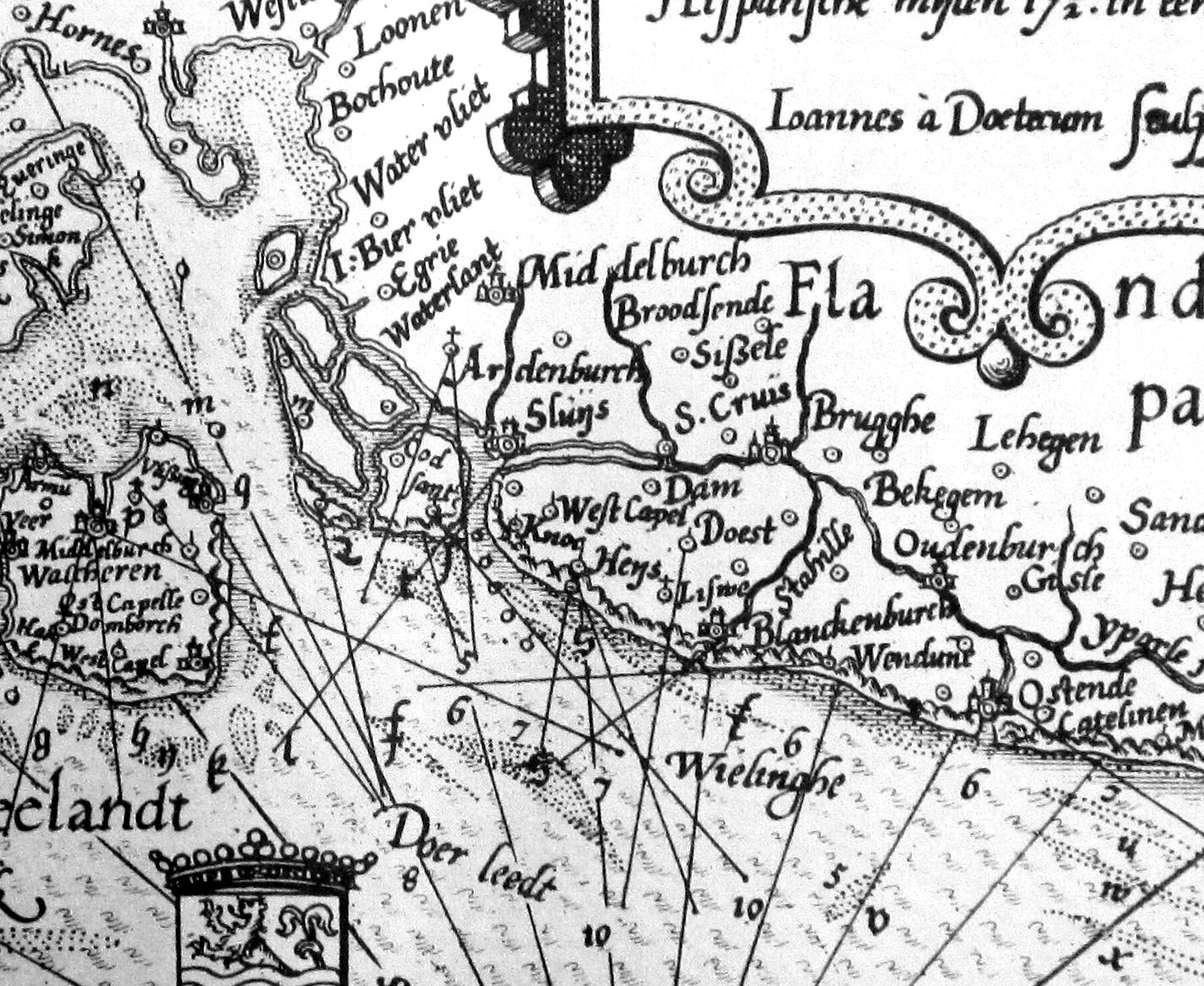 In Lucas Jansz. Waghenaer’s Thresoor der Zeevaert from 1592, one finds the following instructions for sailing into the mouth of the river Scheldt and therefore up to Antwerp through the Wielinge, a swash channel between the sandbanks east of the mouth of the river: