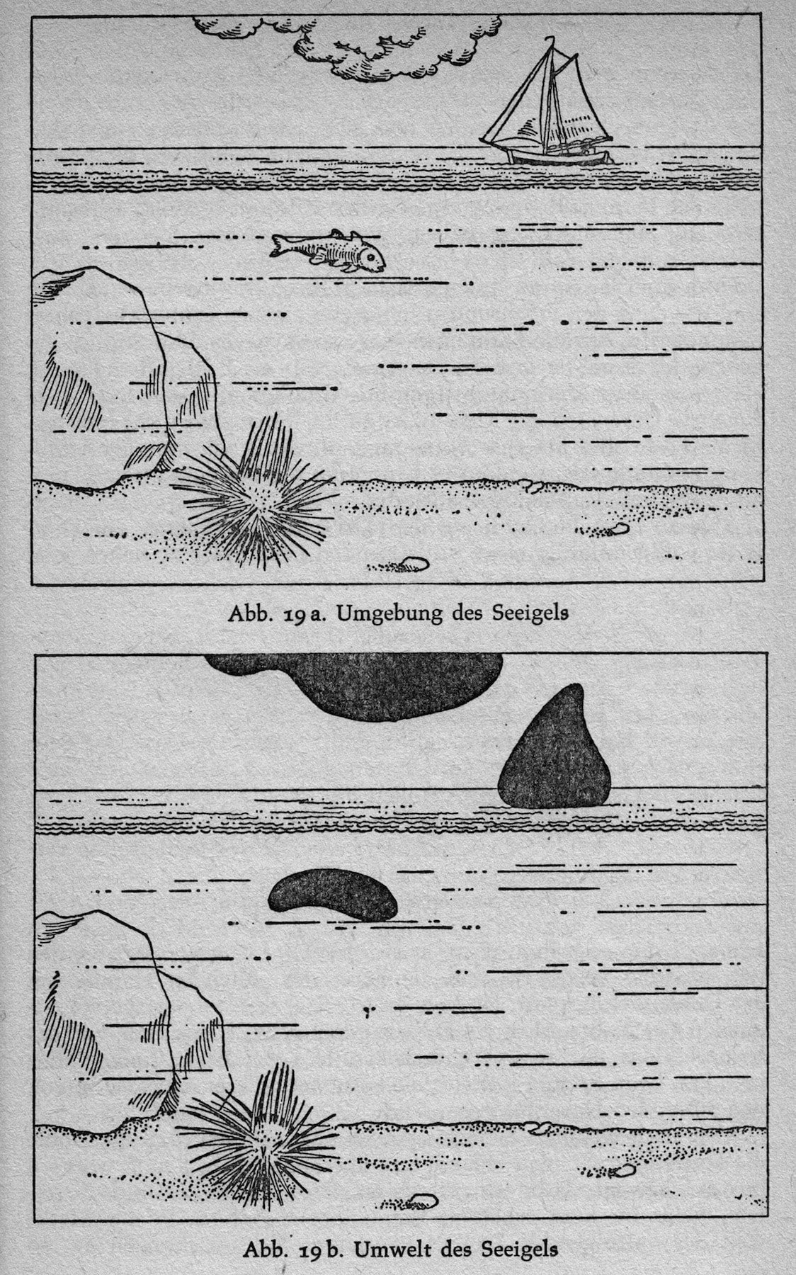 The Umgebung and Umwelt of the sea urchin. From Jakob von Uexküll, Streifzüge durch die Umwelten von Tieren und Menschen, 1933. Image taken from 1956 edition.