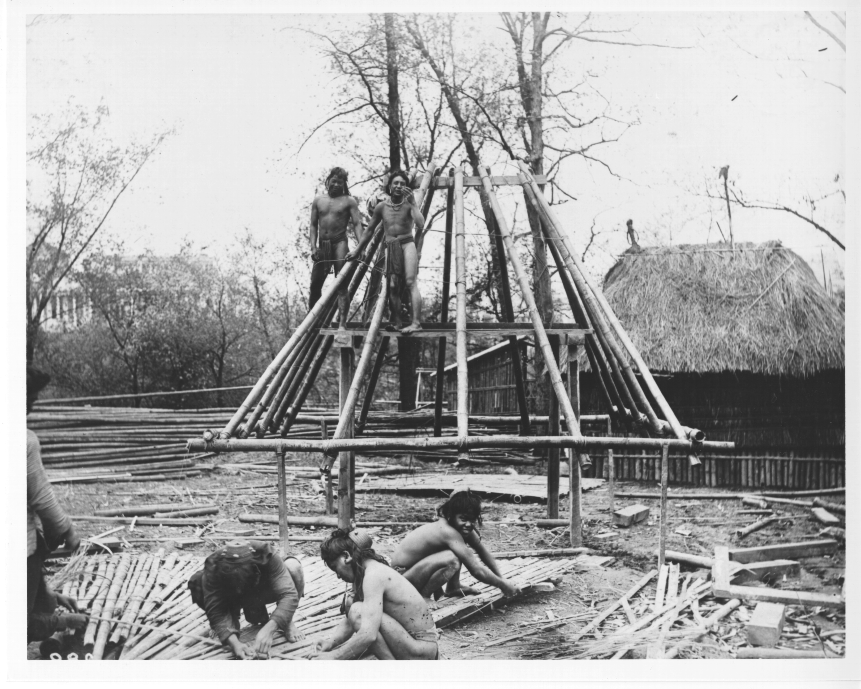 Photographer unknown, “Igorots” building a native home at the St. Louis Exposition, 1904.