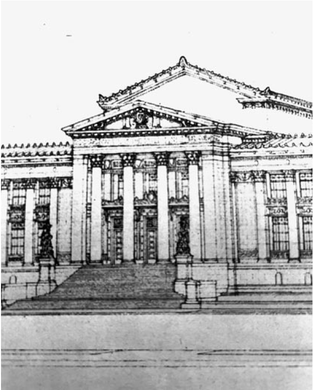 The new Legislative Building broke with Burnham’s plan, rising on a site originally intended for the national museum and library, situated at the hinge between the Rizal court and an arm of municipal and cultural programs that p. 47 wrapped around the eastern (city-facing) side of Intramuros. Two possible reasons explain this change. The first is rhetorical: the site was not intended as a permanent home for the capitol building. By reserving the site originally intended for the capitol, the design acknowledged that national sovereignty had not yet been achieved.9 Another purely pragmatic consideration was that Ralph Harrington Doane, the last American consulting architect to serve in the Philippines had, before his departure in 1918, already developed, along with his Filipino assistant, Antonio Toledo, a design for the site—albeit for a library. With only two years between the passage of the Jones Act and the 1920 presidential elections, there was not enough time to develop plans for the original site, let alone to begin construction. A quicker and more convenient solution was to reconfigure Doane’s library.10