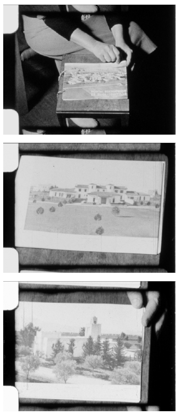 Another of Daumézon’s films, this one preserved under the title Hospitals (Blida), offers a unique documentation of a few transformations Fanon was able to introduce at the clinic. The film offers a glimpse of how space—its atmosphere and architecture—might be reshaped through social therapy into an instrument of disalienation. At first, the film underscores the relation between Blida-Joinville’s p. 105 present and past by featuring a booklet with images of the clinic’s opening. The same images had accompanied the 1939 article in La construction moderne: a modern hospital symbolizing the French “civilizing” presence in Algeria. In what follows, Daumézon’s camera captures the pavilions in their current state, showing them from different angles and thus revealing the geographical location of the hospital surrounded by the mountainous landscape of Tell Atlas. Daumézon also captures an outdoor construction site—perhaps the additional building requested by Fanon to house the nursing school—with footage of labor. The men, eventually Algerian patients, smile at the camera.128 Yet another shot of an ergo-therapy session documents female patients in a knitting or dressmaking workshop. Fanon believed it was essential to foreground the transformative experiences related to these bodily and aesthetic practices: colorful dresses replacing the monotony of the hospital gown; or the sensuous experience of a fitting ceremony “at which the women had to remain perfectly still while in the expert hands of the dressmaker.”129 As at Saint-Alban, those individual and collective practices weaved the institutional fabric through their milieu-oriented and therapeutic effects. The goal was to initiate in the framework of the colonial and oppressive establishment of Blida-Joinville an institution in Tosquelles’s sense: a place where the inmates would no longer remain strangers to their environment but would actively take part in its becoming. Understood in this transformative quality, “the institution, then, becomes too strong not to modify the patient’s attitude vis-à-vis the milieu: the patient can no longer live [her] madness without dealing with all that which surrounds her.”130