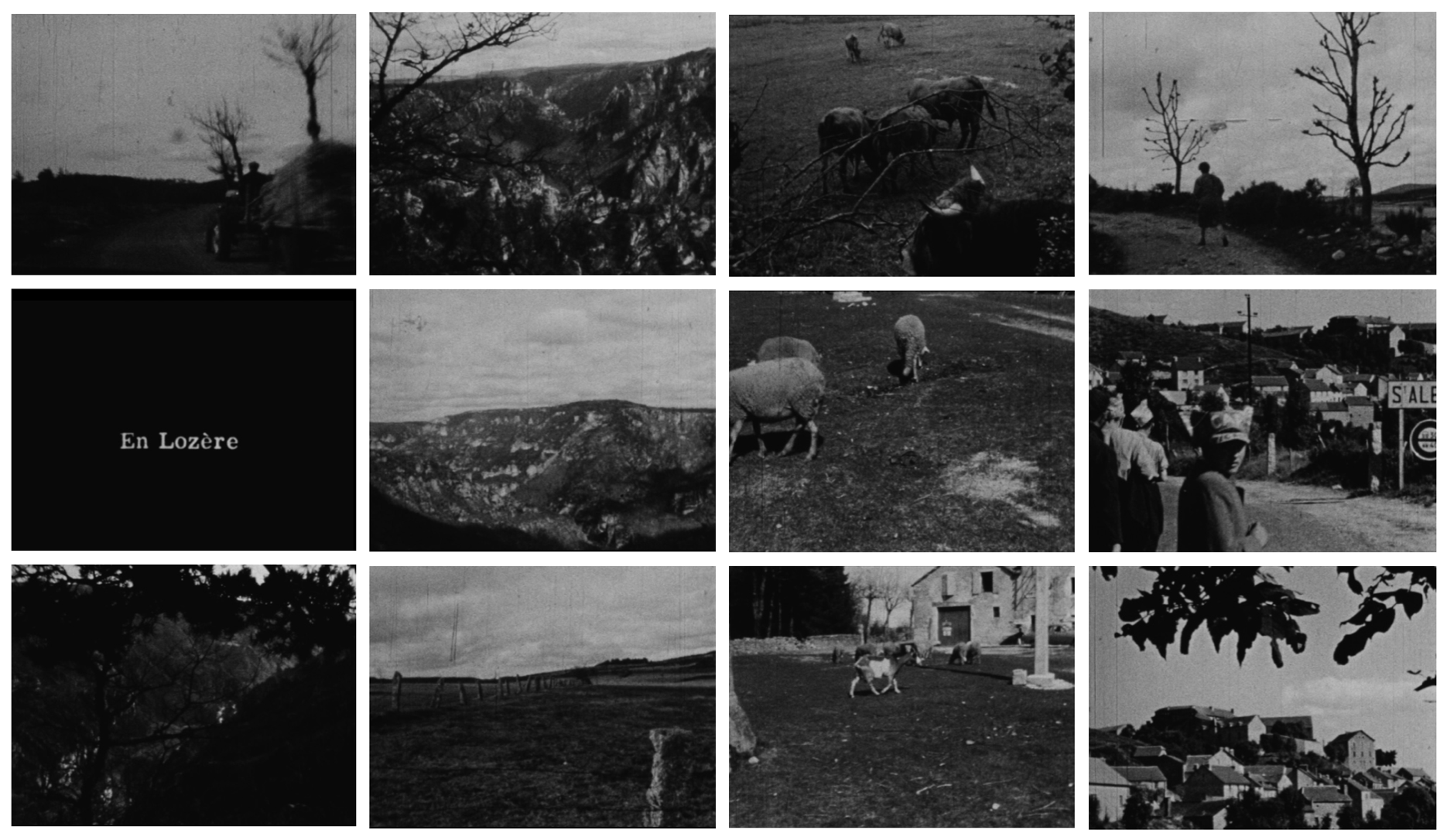 Stills from Helena and François Tosquelles, Société lozérienne d’hygiène mentale, Institut Jean Vigo—Cinémathèque de Perpignan, 1954–1957, Courtesy Michel Tosquelles. The film Société lozérienne d’hygiène mentale (Lozerien Society of Mental Hygiene), produced from 1954 to 1957 by Helena Tosquelles and François Tosquelles together with the patients of Saint-Alban, documents the radical transformations of the clinic, revealing the complex of institutional psychotherapy. Made with an 8 mm Paillard camera, the film was shown at Saint-Alban and circulated in the confines of other psychiatric institutions in three parts: “Social Therapy,” “Ergo-therapy,” and “Parties” [fêtes]. It presents the clinic as a “society,” a formation of resistance against the given conditions of confinement.31 It opens with a cartographic sequence that situates Saint-Alban in the rural department of Lozère and the mountainous and sparse ecology of the Margeride in southern France. This precise geographic and environmental inscription reveals a crucial geo-psychiatric gesture bridging the hospital and its surroundings.